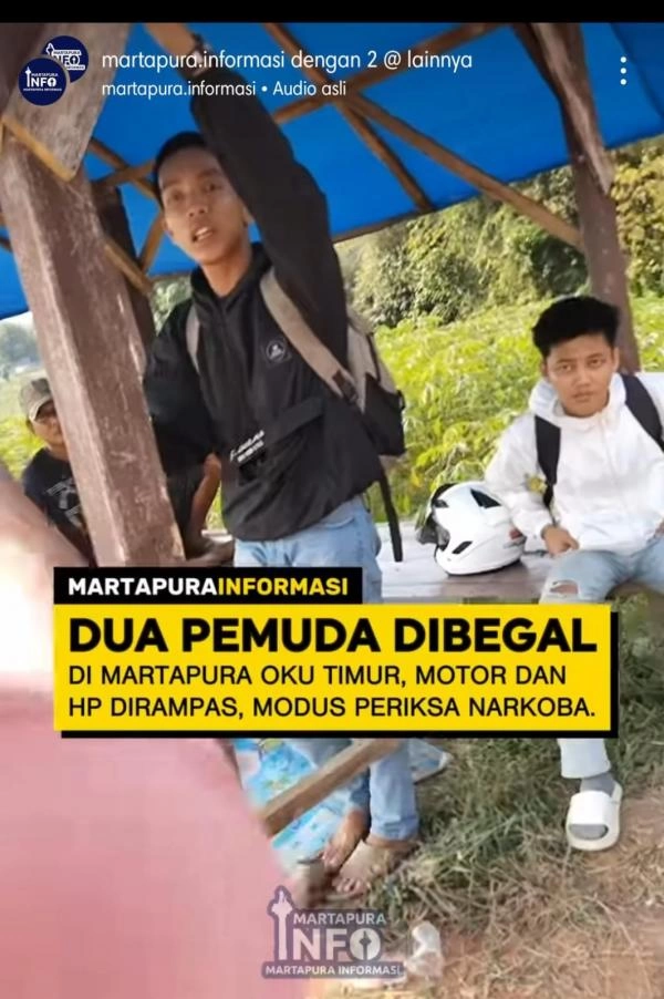 OKU Timur, - Dua pemuda asal Baturaja, Kabupaten Ogan Komering Ulu (OKU), menjadi korban begal di Martapura, OKU Timur. Pelaku menggunakan modus pura-pura memeriksa narkoba dan barang bawaan korban sebelum merampas motor dan handphone (HP).
