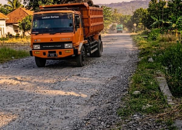 Jalan Kabupaten OKU Timur diketahui menjadi lintasan utama kendaraan pengangkut batu dari kawasan tambang di Desa Lengot, Kecamatan Jayapura